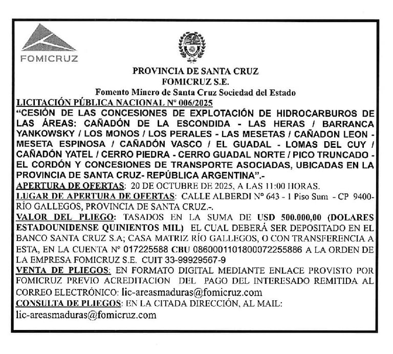 Abstracto de los Pliegos Licitatorios: Licitación Pública Nacional 006/2025.-